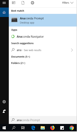 Once you are done with the installation, you will be able to use the “conda” package manager that is available for managing the virtual environments and package installation of anaconda. Now launch the “Anaconda Prompt” from the Start menu.
