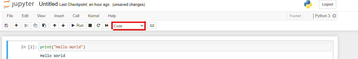 - In the Code Cell, you write the code that will be executed by the kernel.