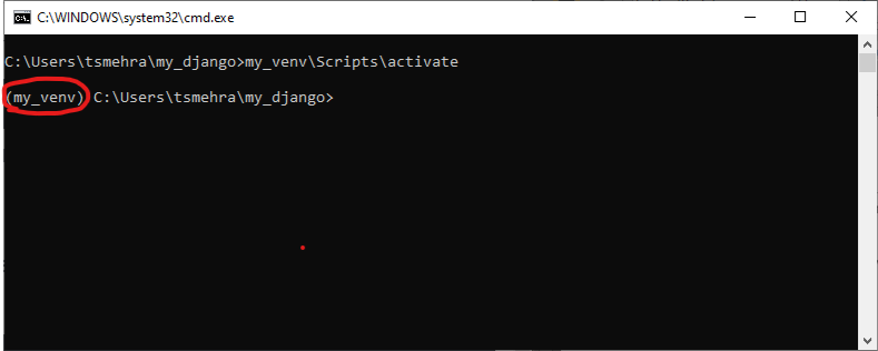 Now we need to activate the virtual environment. By activating the virtual environment, the virtual environment name