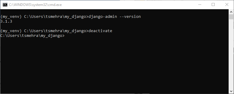 Here in this Python tutorial, you learned how to install Django in windows. Here we have covered two approaches to downloading Django on windows. In the first approach, we covered how we can download Django for the complete python environment. And in the second approach, we provided steps to download Django for a python virtual environment. Often when we create a Django project, we use a virtual environment. This helps in keeping our Django project isolated from the already installed packages. People are also reading: