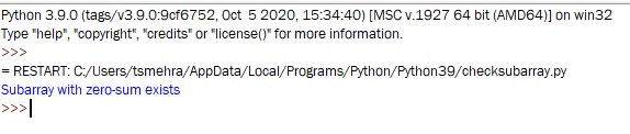 In the above array, there is no such subarray that has a sum equal to 0. And that's why it prints the statement
