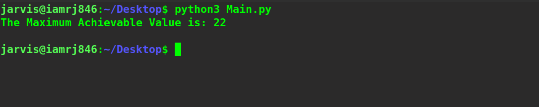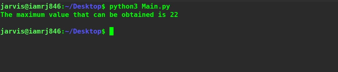 print("The Maximum Achievable Value is: " + str(Rodcutting(prices, length)))