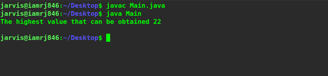 System.out.println("The highest value that can be gotten is:"+rodcutting(prices, length));