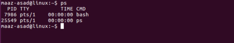 Since Linux is a multi-tasking operating system, multiple processes can run simultaneously without interfering with each other. The ps command is helpful in listing the currently running processes in your system. Like other shell scripting basic commands, it also has some options that you can provide along with the command. The ps is shorthand for “Process Status . ” The command lists the following 4 columns in the terminal: