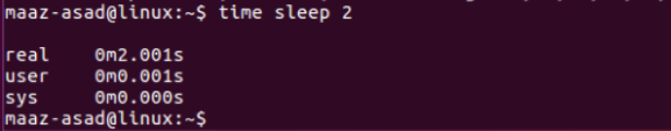 The time command is used to execute a command and prints a summary of real-time, user CPU time and system CPU time spent executing a command when it terminates. ‘real‘ time is the time taken by a command to get executed, ‘user‘ and ‘sys‘ time are the number of CPU seconds that command uses in user and kernel mode, respectively. The syntax for the time command goes: