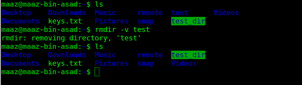 In this article, we discussed the rmdir command in Linux. Deleting a (set of) directory is a common task while working on Linux-based projects. This task can be accomplished by using the rmdir command. Please note that the Linux shell command only deletes empty directories and skips deleting non-empty directories. You can also delete multiple directories in the same directory using the rmdir command. Also, to get the deletion verification message, use the -v option.
