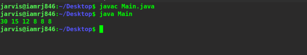 ans[length] = max(ans[length], arr[i]); }: Using this we get the ans[] array as {0, 30, 15, 12, 0, 0, 8}.