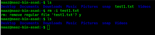 This command is used to remove a file from your system. Using -i option with the command prompts the user before deleting the file.