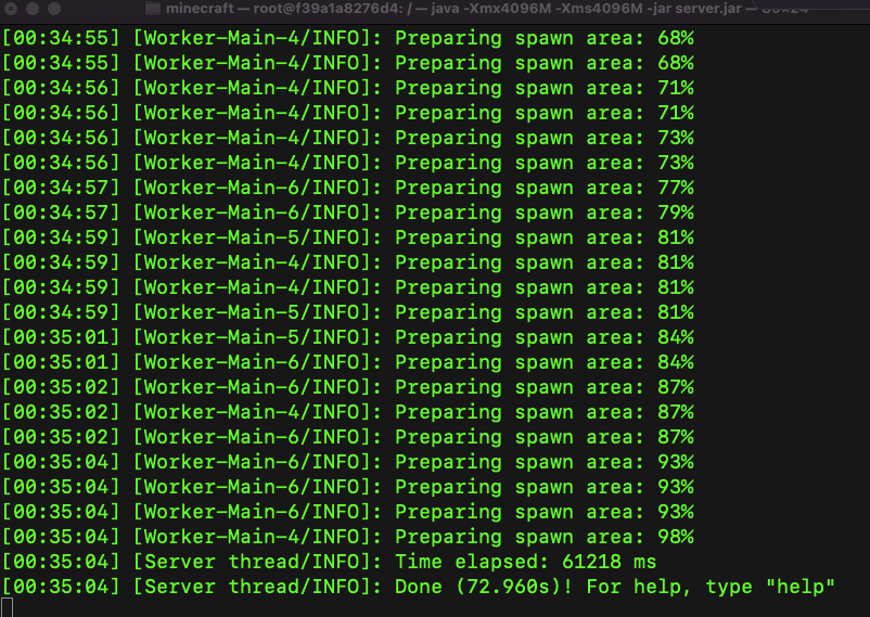 Now, the server is starting up, and you will see updates, as shown above. Once the server is ready, you will see a message as shown below: