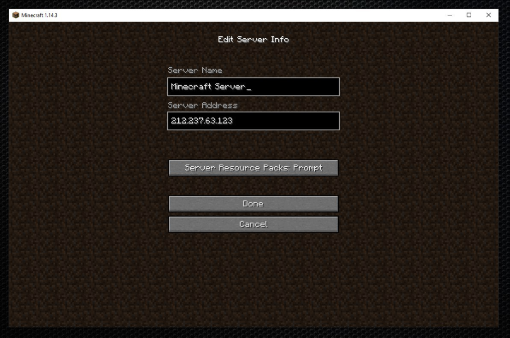 Now enter the Local IP address of the Minecraft server along with a name for the server. The name can be anything, which can help you identify the server.