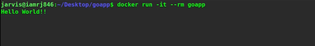Here, we have a function that returns a simple hello world message, and then, inside the main function, we call this function and print the output. Consider the Dockerfile below.