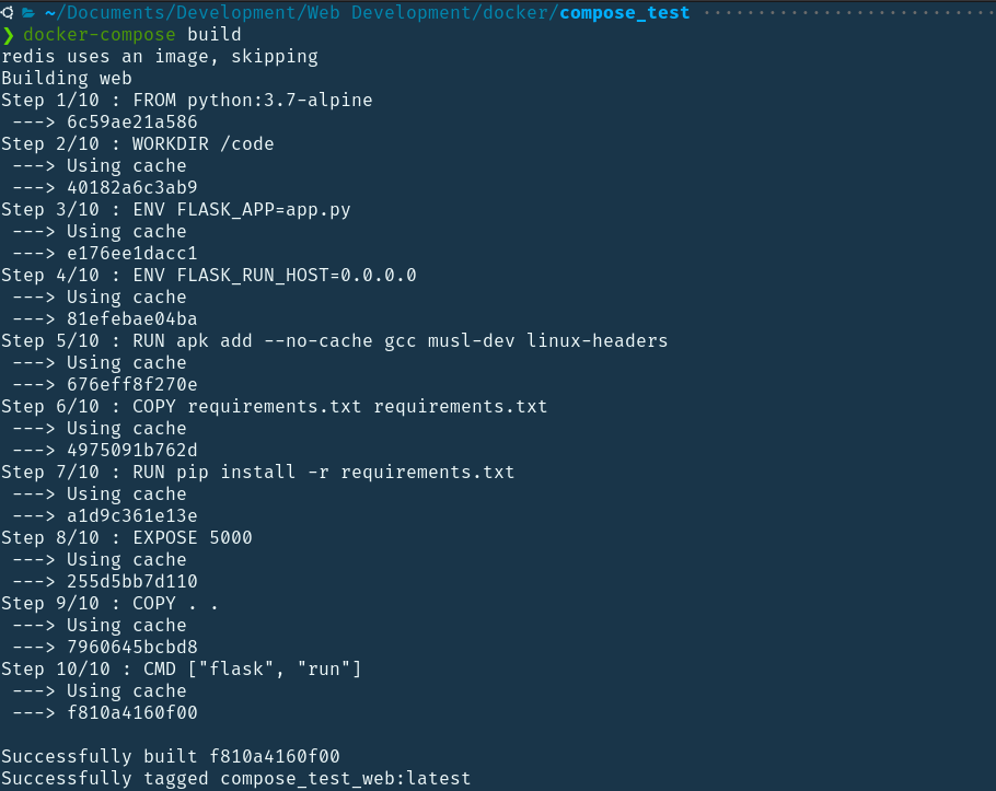 It used the dockerfile to build the web image. Here, it used the cached base image of python which already existed on the machine. As redis did not have any docker file, it just pulled it as a base image. After the services are created, it is tagged as web_service. Options