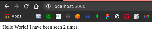 import time import redis from flask import Flask app = Flask(__name__) cache = redis.Redis(host='redis', port=6379) def get_hit_count(): retries = 5 while True: try: return cache.incr('hits') except redis.exceptions.ConnectionError as exc: if retries == 0: raise exc retries -= 1 time.sleep(0.5) @app.route('/') def hello(): count = get_hit_count() return 'Hello World! I have been seen {} times.\n'.format(count)