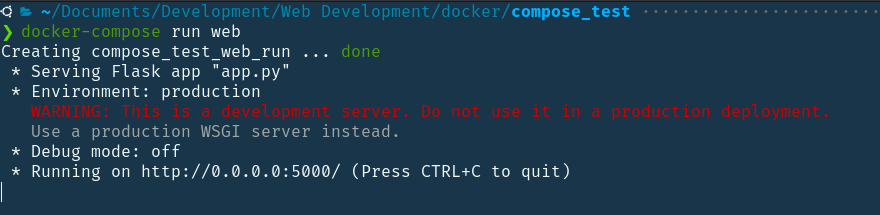 As you can see, the web service is actively running and can be accessed at port 5000 in the localhost.
