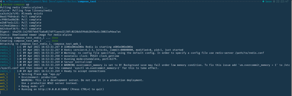version: "3.9" services: web: build: . ports: - "5000:5000" redis: image: "redis:alpine"