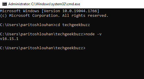 To verify whether node.js was installed successfully on your machine or not, you can run the following command in your command prompt and test it:-