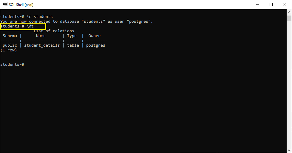 command on your Shell(psql)