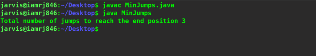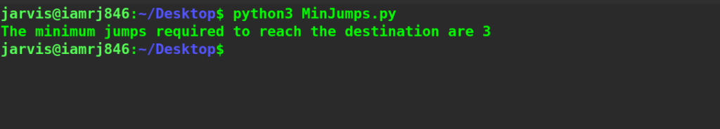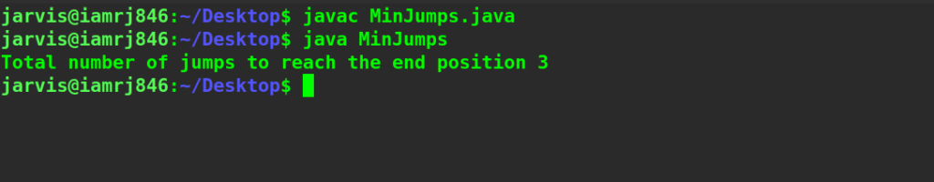 - Finally, return the jumps[n-1] that is the total minimum jump.