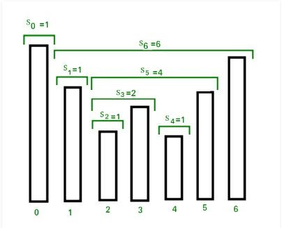 - Iterate a loop and call a recursive function to all previous indexes and count the total number of days for which the price of the current element is larger or equal to all previous consecutive days.