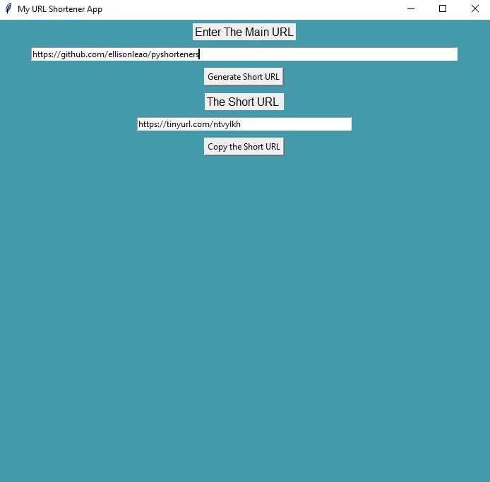 Now, we will create a Python-based GUI application using Tkinter which will generate short URLs for us. The following is the Python program to create a GUI application for shortening URLs: