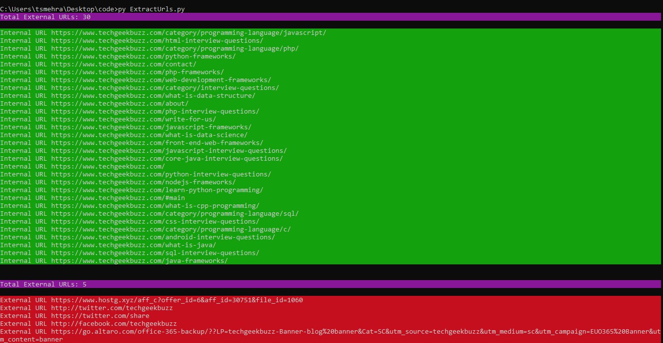 print( Back.MAGENTA + f"Total External URLs: {len(internal_urls)}\n")