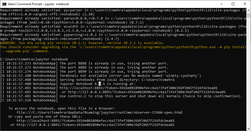 Anaconda is great, but it consumes many resources and may lag on your system. The pip is the python package manager that comes with the most Python distributions. And with a simple pip install command, Jupyter Notebook installs on your Python environment. Installing Jupyter Notebook using pip is very straightforward. And within two steps, you can install and run Jupyter Notebook in your system. This is the reason why installing Python with pip is very popular. <Note>: Before you use the pip command to install Jupyter Notebook make sure that Python and pip are installed on your system.