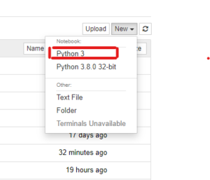 Now Jupyter Notebook is running on your localhost. So now you can surf to the directory where you want to create your project and start coding.