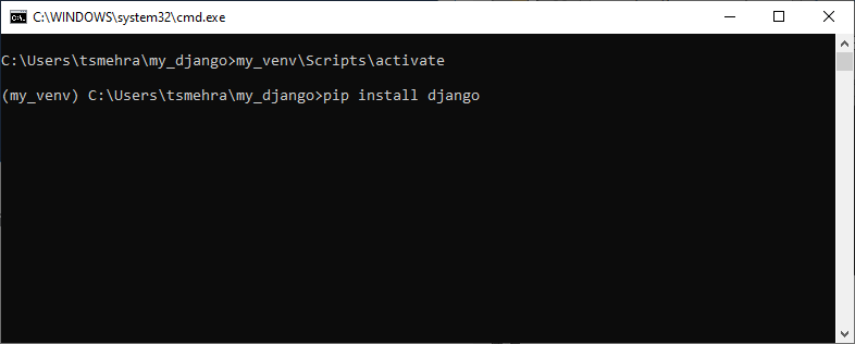 The above installing steps will install the Django for your entire python environment. But if you want to create an isolated new python project where you do not want the already installed python packages affecting the new project. For that, you can create a Python virtual environment and install specific packages for it. Here we have provided the simple steps to guide you through how to install Django in a python virtual environment.