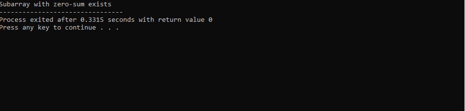 C++ Code to Check if a Subarray with 0 Sum Exists or Not