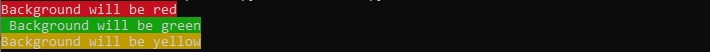 print(Back.RED+ "Background will be red")