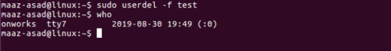 - This command forces the deletion of the user irrespective of whether the user is logged in or not in the system.