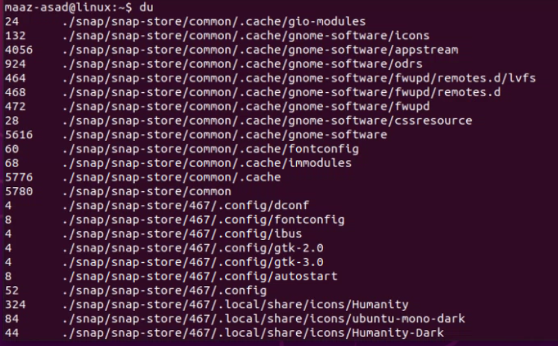 This shell command is shorthand for “disk usage.” It is used to estimate file space usage. You can use it to see the objects that are consuming excess space in your disk.