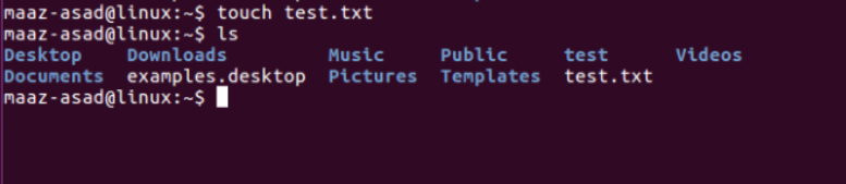 This command lists all the files and directories in the current working directory. For this, you just need to type ls in your terminal. However, the ls command can also list the content of other directories. For this, you will need to write the name of that particular directory after the command. For instance, the following command lists all the files and directories in the “ test ” directory:
