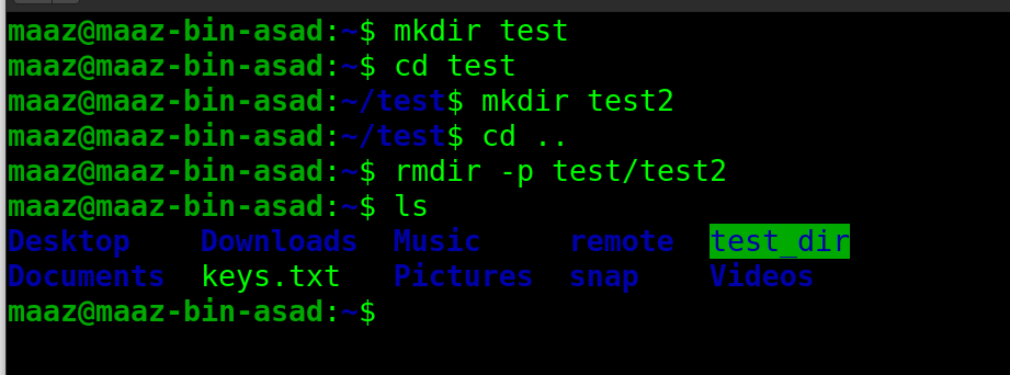 Every directory parameter is handled as a pathname in this option and all directories in the path will get deleted. Below is an implementation of this command: