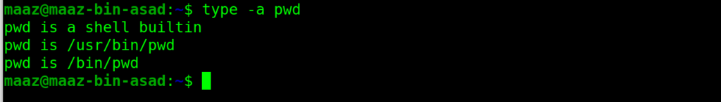 You will get an output like the one shown below: 2. Print the version of pwd in the terminal: