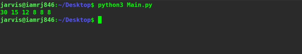 ans[length] = max(ans[length], arr[i]); }: Using this we get the ans[] array as {0, 30, 15, 12, 0, 0, 8}.