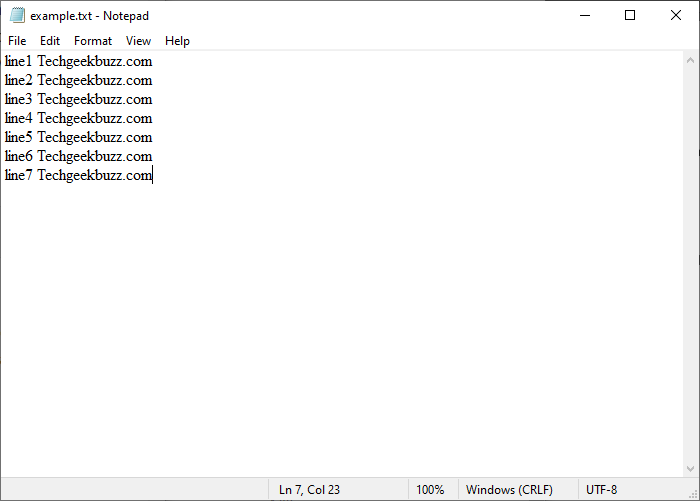 ['line1 Techgeekbuzz.com', 'line2 Techgeekbuzz.com', 'line3 Techgeekbuzz.com', 'line4 Techgeekbuzz.com', 'line5 Techgeekbuzz.com', 'line6 Techgeekbuzz.com', 'line7 Techgeekbuzz.com']