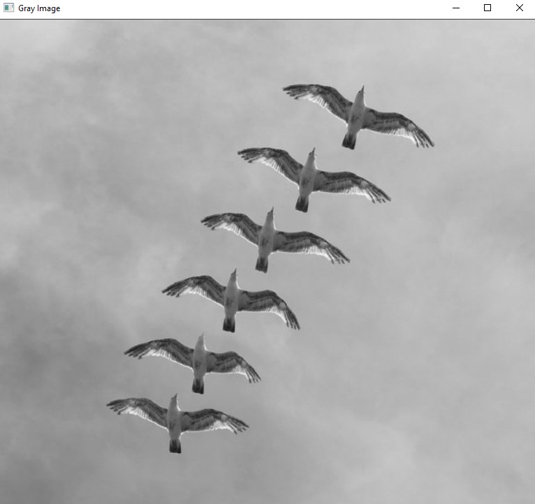 As you can see that now we have a grayscale image of our birds image. Converting the RGB color image to a black and white image is very important because it helps in finding the proper edges of individual objects.