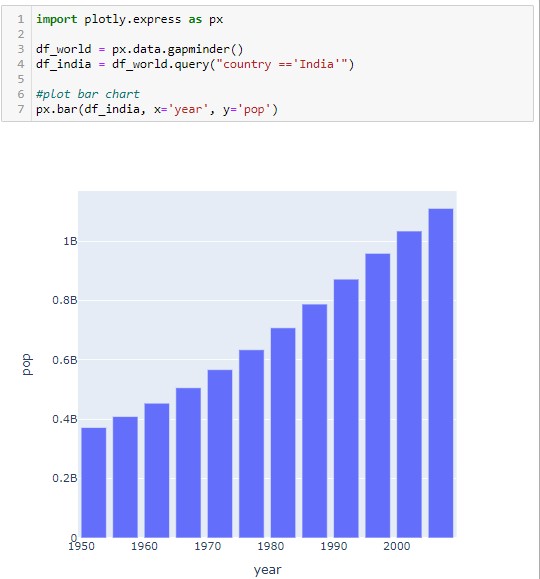 method. Here we will be Plotting the population bar graph for India. For the data set, we will be using the Plotly data package