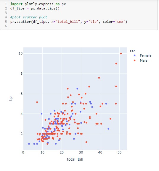 Scatter Plot is a graphical dot value representation for two or more two variables. To plot the scatter plot in Plotly, we use the Plotly
