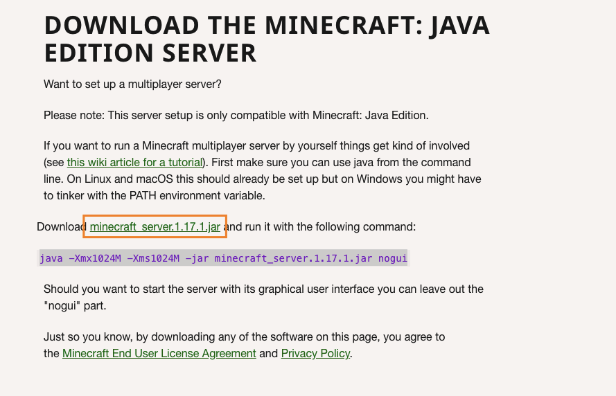 Step 1: Go to minecraft.net and download the Minecraft server . In this blog, we will be installing Minecraft server 1.17.