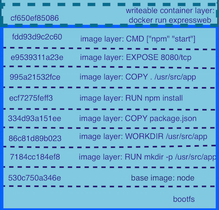 - Our second instruction in the Dockerfile created a layer with ID 9660d15b1876. This was the EXPOSE instruction.