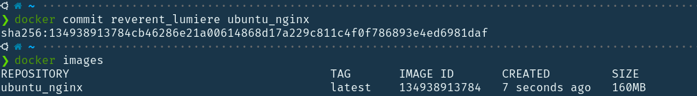 $ docker commit [OPTIONS] CONTAINER [REPOSITORY[:TAG]]