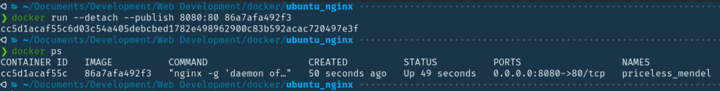 $ docker container run --rm --detach --name ubuntu-nginx --publish 8080:80 3199372aa3fc
