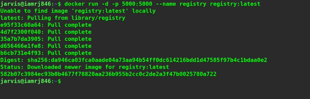 $ docker run -d -p 5000:5000 --name registry registry:latest