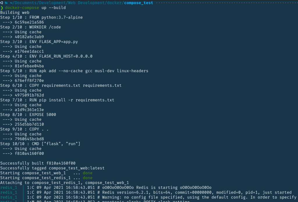 It used the dockerfile to build the web image. Here, it used the cached base image of python which already existed on the machine. As redis did not have any docker file, it just pulled it as a base image. After the services are created, it is tagged as web_service. Options