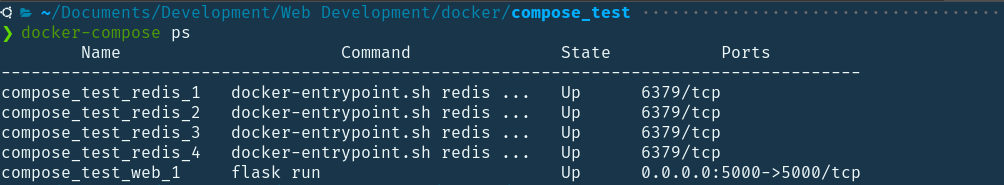 We can use the scale option to spin up as many services as we want, Here, we have used 4 redis services namely redis_1 to redis_4.