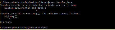 In the above example, you cannot access the private variable and the method outside the class demo.
