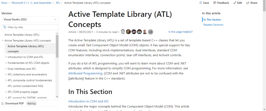ATL, a.k.a. Active Template Library, is an open-source C++ template-based library designed to simplify the programming of Component Object Model (COM) objects. It supports various COM features, like stock implementations, dual interfaces, standard COM enumerator interfaces, connection points, tear-off interfaces, and ActiveX controls.