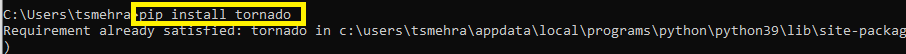 Like all other Python frameworks, we need to install Tornado for our Python environment before writing our first Tornado web application. To install the Python Tornado framework, we can use Python's pip install command.